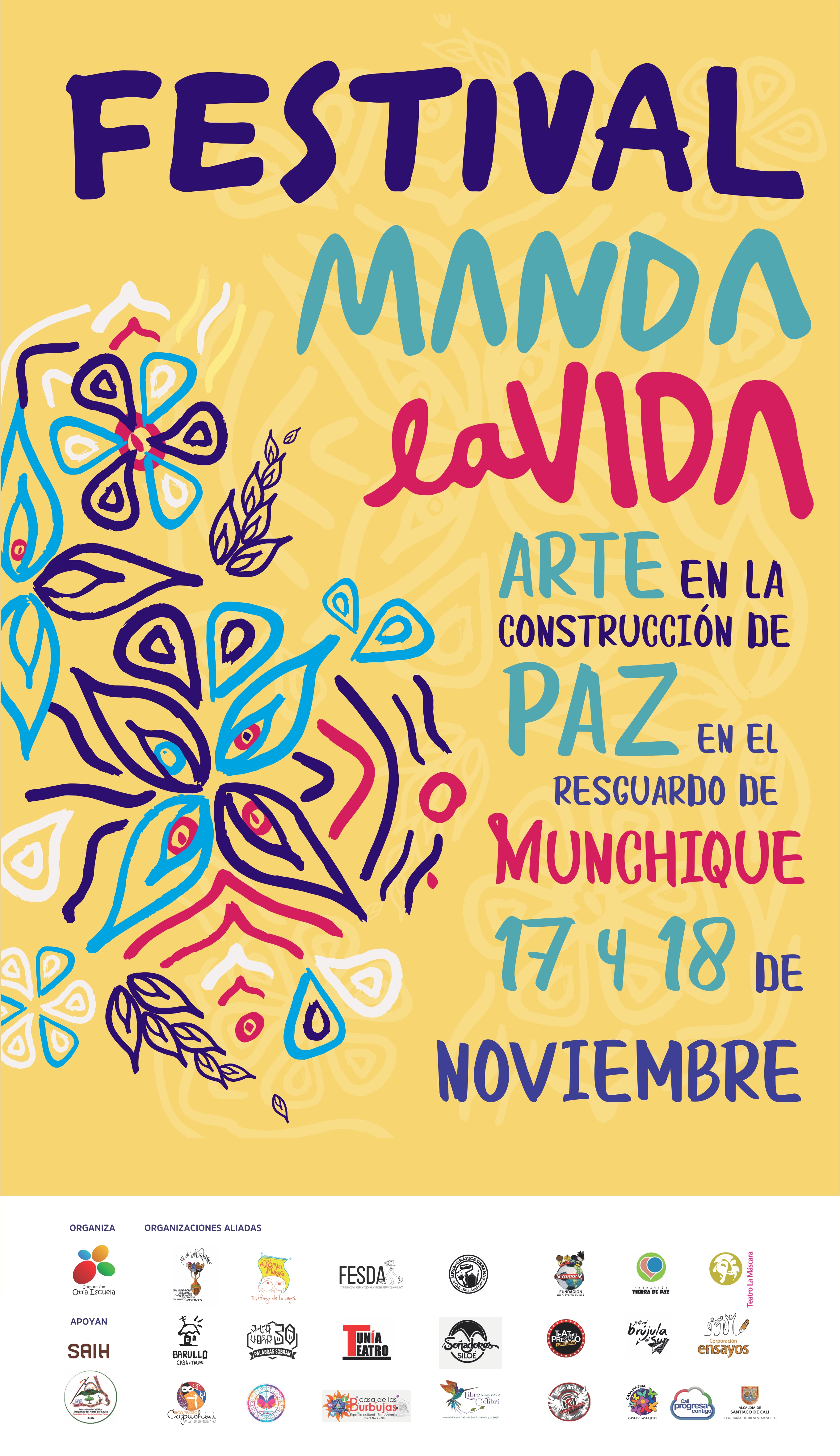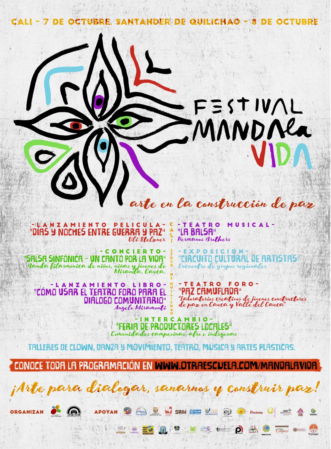 MandaLaVida es una apuesta de Otra Escuela tras el sueño de que grandes públicos puedan vivir, sentir y reflexionar sobre el poder del arte en la construcción de una realidad Noviolenta para nuestro país. Convencidas que el uso de los lenguajes artísticos posibilita identificar con más claridad las heridas históricas para sanarlas y apelando a la creatividad para ensayar las transformaciones necesarias para evitar que las violencias sucedan, en el año 2017 llevamos por primera vez el festival MandaLaVida a Santander de Quilichao y Cali, movilizando alrededor de 1000 espectadores. Con este impacto, decidimos lanzarlo nuevamente en los años siguientes: Cali y Munchique (2018), Cali (2019), San Francisco y Aguablanca (2021) y en Buenos Aires - Cauca (2023).