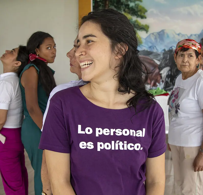 Hemos trabajado con mujeres constructoras de paz en lugares como Mocoa, Inzá, Buenos Aires, Suárez, Florencia y Santander de Quilichao, comprendiendo que la transformación de las opresiones pasa por el reconocimiento de nuestras emociones y el cuidado colectivo. Creemos firmemente en el poder del teatro como herramienta para la emancipación y la construcción de un mundo más justo.